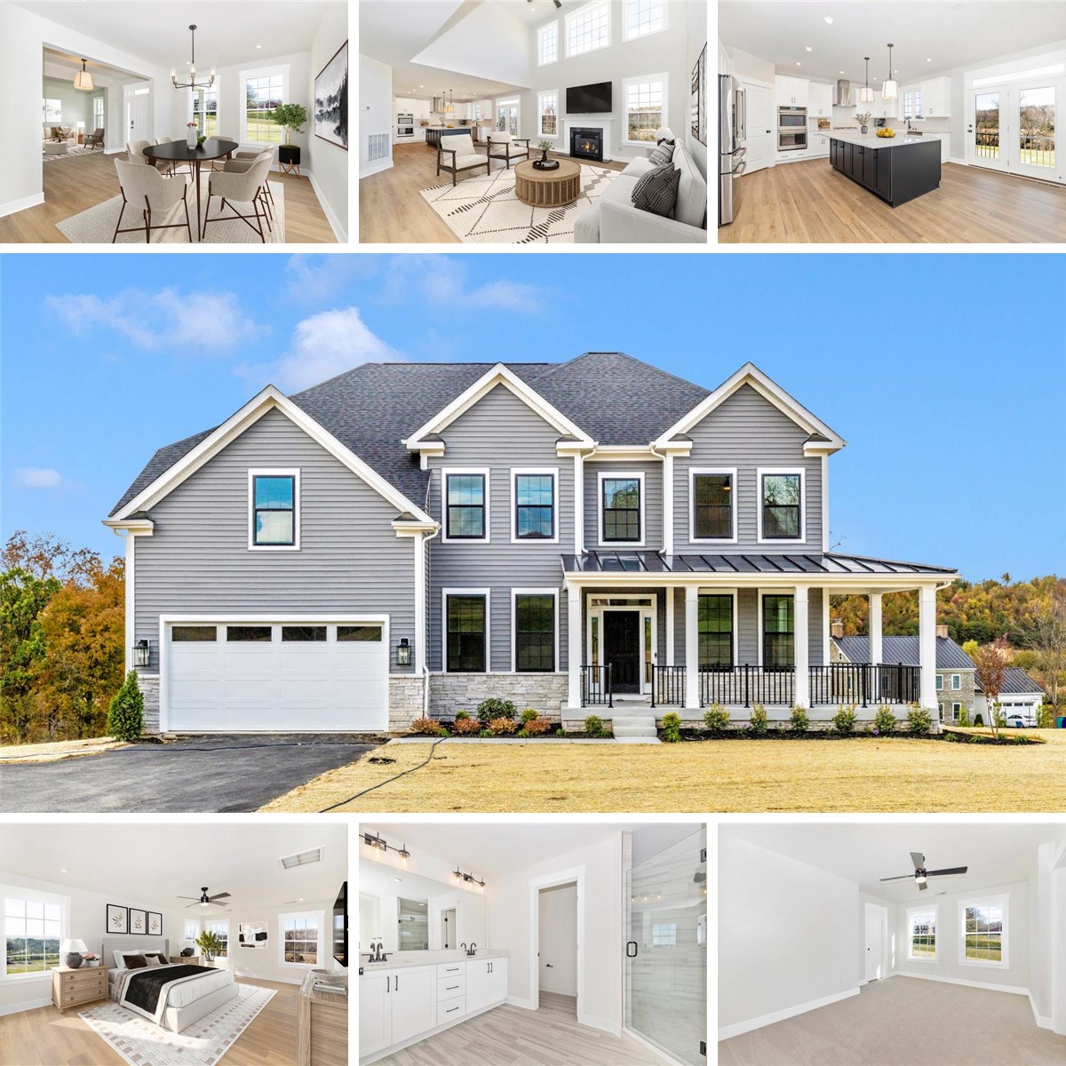 MOVE-IN READY! The Berkeley by PDR Homes at Daysville View Estates presents a rare chance to own a newly built home on a picturesque 4-acre lot in Walkersville. Thoughtfully designed with both function and style in mind, this home welcomes you with a spacious wraparound front porch—the perfect spot to enjoy the surrounding pastoral landscape. Inside, the main level offers an impressive layout, starting with a private office and formal dining room ideal for entertaining. The heart of the home is the two-story family room, featuring a gas fireplace and striking picture windows that bring in natural light and sweeping views.