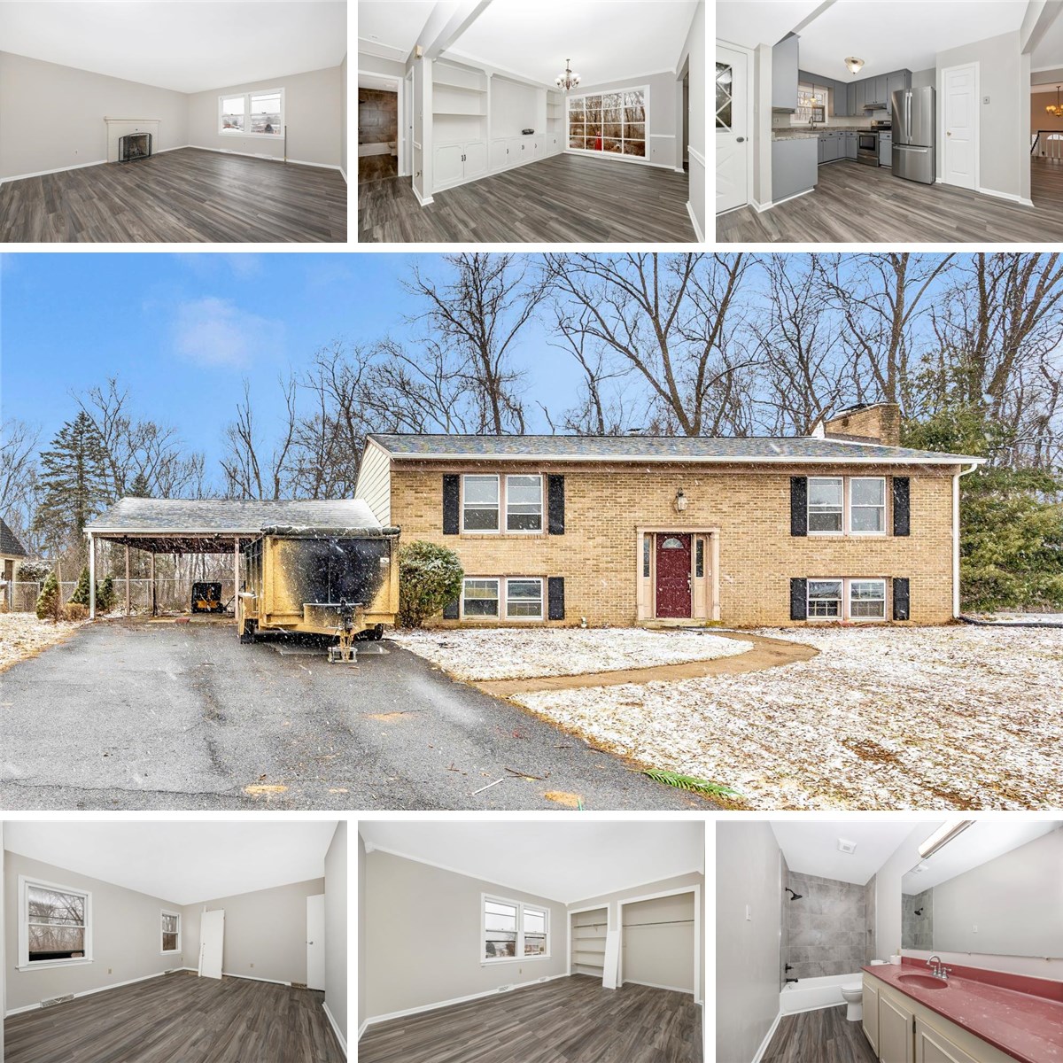 Brick-front split foyer that has been recently remodeled. Enter into a spacious foyer with ceramic tile flooring. The main level features a family room with a fireplace and luxury vinyl plank flooring. The kitchen includes gray cabinets, granite countertops, and stainless-steel appliances, with a deck just off the kitchen that is perfect for entertaining. The dining room offers built-in bookcases for added character and storage. Upstairs you will find two bedrooms and a full bathroom. The lower level includes a second family room with a fireplace, two additional bedrooms, and a second full bathroom. Conveniently located close to shopping, restaurants, and major highways.