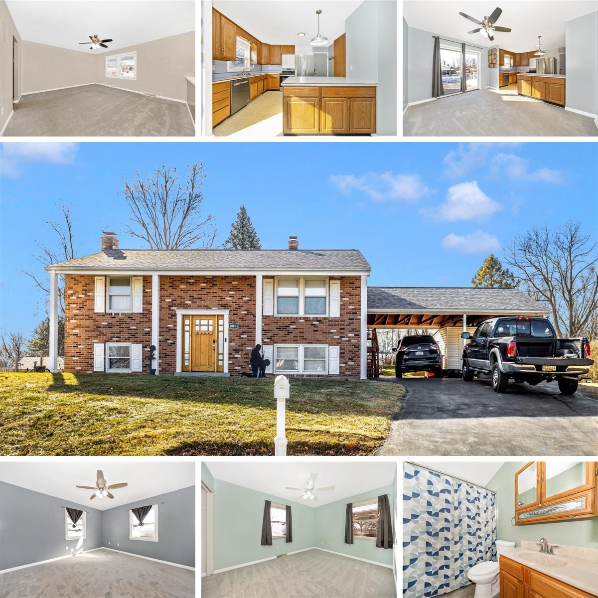 Don’t miss this all-brick, 1,600 sq. ft. home ideally situated on a 1/3-acre lot at the end of a quiet cul-de-sac in the community of Woodmoor. The rear yard is an entertainer’s dream, featuring a spacious two-level deck with composite flooring, a gazebo, and a separate fire pit area, perfect for gatherings year-round. A two-car carport with storage above adds convenience and functionality. Inside, the home is light and bright throughout, with new carpeting, fresh paint, and tasteful updates. The main level offers two bedrooms and a full bath, along with a large kitchen and dining area. The kitchen has solid oak cabinetry and stainless-steel appliances. The lower level is filled with natural light and includes a huge family room with a masonry fireplace, a private third bedroom, and a second full bathroom. Move-in ready and beautifully maintained, this home offers comfort, space, and a fantastic outdoor setting
