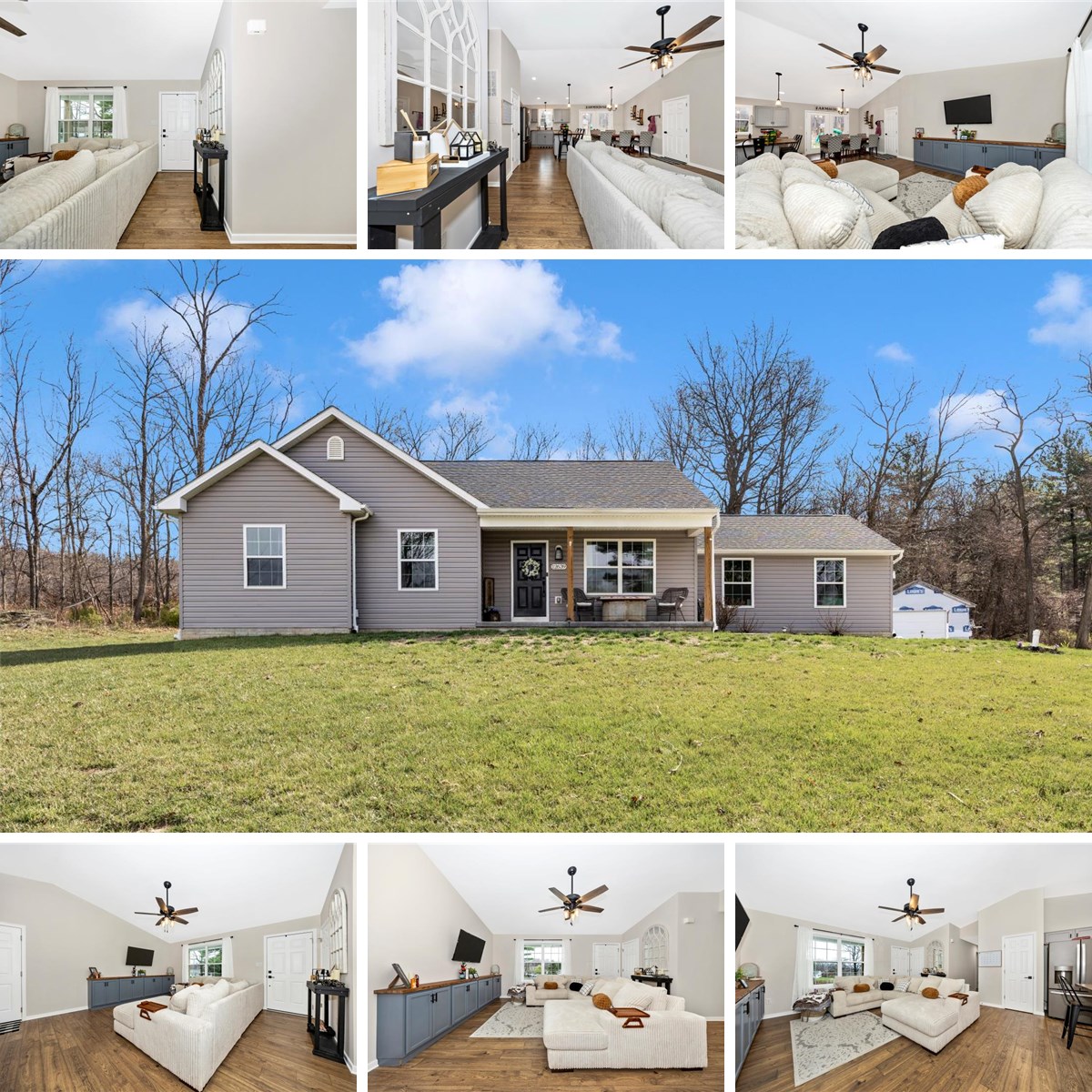 Perched at the top of Pen Mar Road in Waynesboro, this nearly new home offers breathtaking views and a peaceful setting just minutes from Blue Ridge Summit and Pen Mar Park. Completed in 2022, this beautifully designed home blends modern finishes with an open, airy layout that’s perfect for everyday living and entertaining. Step inside to find stunning luxury vinyl plank flooring flowing throughout the main level and an inviting open-concept living, dining, and kitchen area highlighted by cathedral ceilings. The custom kitchen is a standout, featuring dark stainless steel appliances, rich butcher block countertops, and a large center island that anchors the space. The primary suite offers a private retreat with a spacious walk-in closet and a beautifully appointed bath complete with a walk-in tile shower, double bowl vanity, and linen closet. Two additional bedrooms and a full hall bath with ceramic tile flooring and a tiled tub surround provide comfortable accommodations for family or guests. The full unfinished basement offers incredible potential for future living space, already equipped with a full bath rough-in, laundry area, and walk-up access to the yard. Situated on 1.23 acres, the property provides plenty of room to enjoy the outdoors and includes a storage shed and a two-car attached garage. With its elevated setting, modern construction, and scenic surroundings, this home is a rare opportunity to enjoy mountain-area living with contemporary comfort.