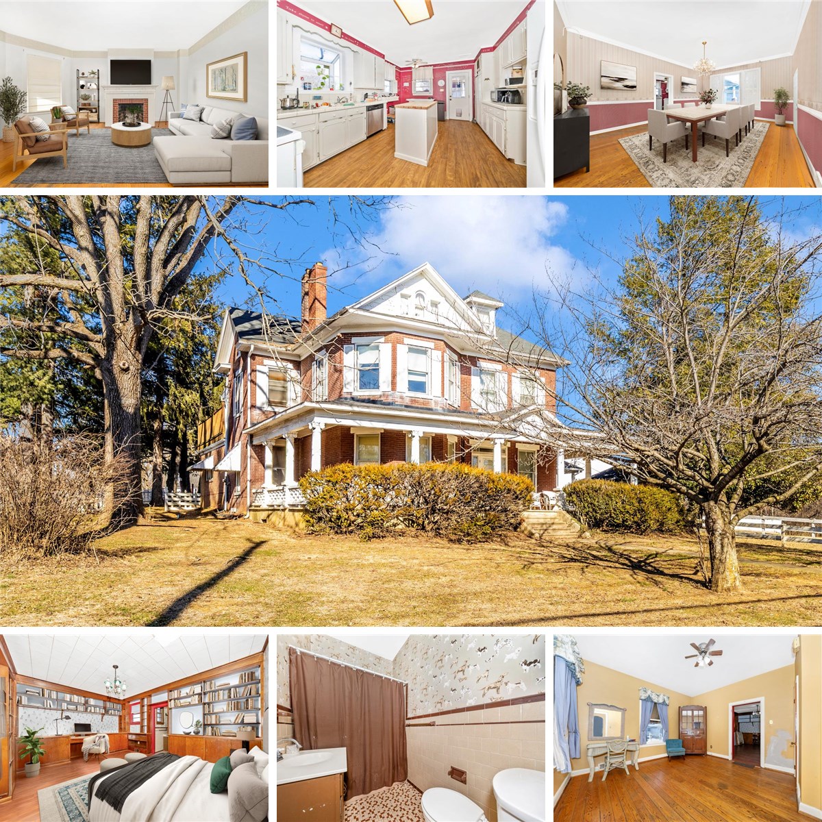 They just don't build them like this anymore! Come check out this GRAND home on nearly THREE acres OUTSIDE CITY LIMITS! The main level of this all brick beauty includes: foyer, living room with fireplace, separate dining room, kitchen, full bath, laundry room, primary suite with full bath and connecting private den / study / home office. Upstairs you will find the original hardwood floors, FOUR more nicely sized bedrooms and a THIRD full bath! One of the bedrooms leads to a HUGE private deck overlooking the backyard. The walk up attic provides potential for MORE finished living space OR a ton of storage. PLUS a basement for more storage / living needs. Outside an attached carport provides covered parking, a detached two car garage for enclosed parking. Large barn two level offers more possibilities: animals (as allowed by the county), workshop, entertaining, home gym. .. .the possibilities are endless. AND a milking shed that would make the best she shed, man cave, potting shed, garden shed, chicken coop. .. again - use your imagination! This home and property offer endless potential and possibilities.
