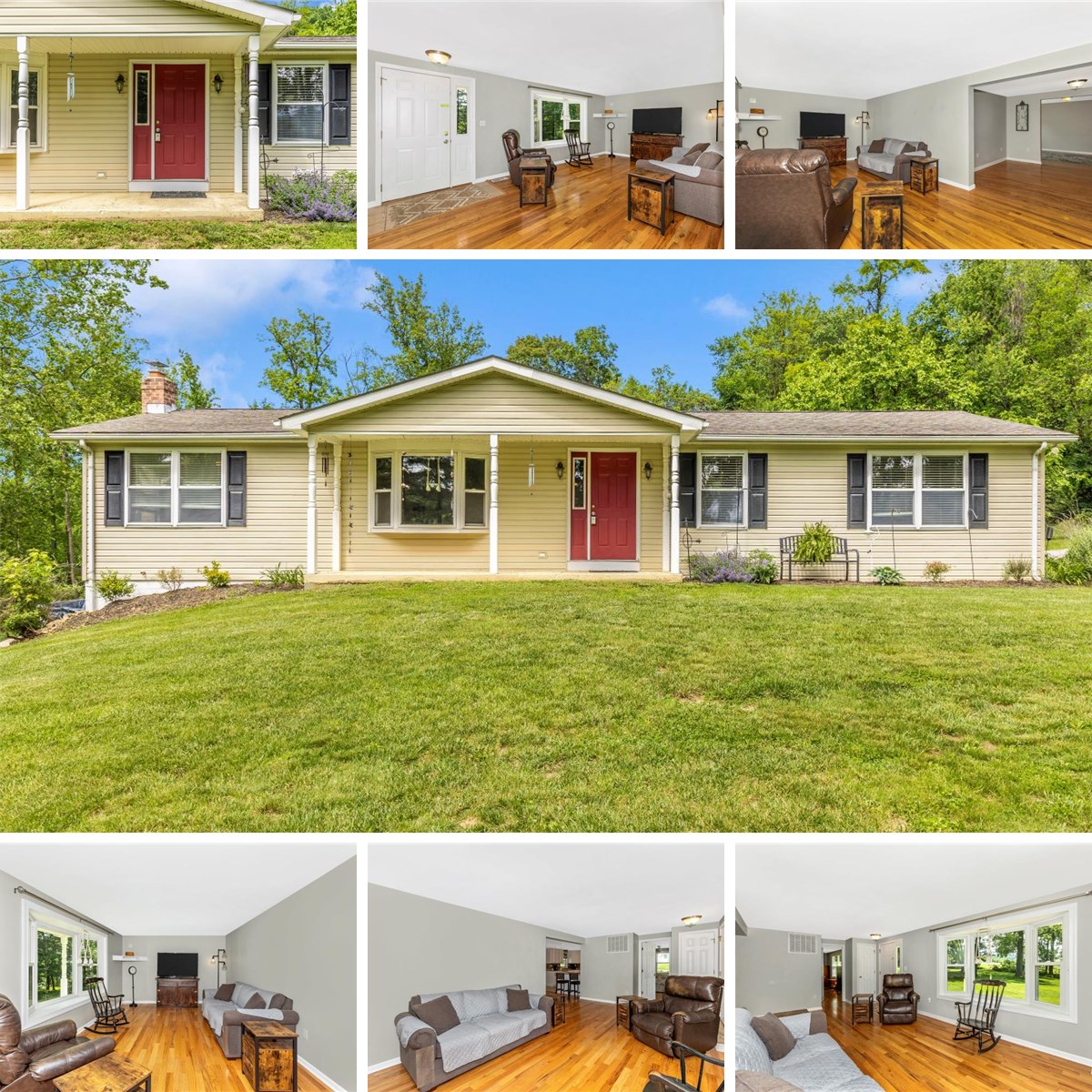 This charming Rancher sits on a tranquil 1.45 acre lot in beautiful Smithsburg, Maryland. Featuring three bedrooms and 2-full baths, the home offers a private primary suite with a walk-in closet and en-suite bath. The two additional bedrooms and a second full bath are located on the opposite end of the home for added privacy. Enjoy the warmth of beautiful gleaming hardwood floors throughout the main living areas. The semi-open floor plan connects the living room, kitchen, dining area, and den-each space flowing seamlessly into the next. The kitchen features white cabinets and white appliances, and there's a separate laundry/mudroom off the garage with a full-size washer and dryer (sold as is). The spacious living room includes a large picture window, perfect for taking in views of the front yard, a small creek area, open fields, and scenic mountain landscapes. Additional features include an oversized two-car garage; parking for 6+ cars; an outbuilding currently used as a hobby shop; a covered front porch for relaxing outdoors; a walk-out basement (unfinished) with a wood stove; a rear deck off the dining room plus a second deck for the pool. Great entertaining area. This property offers peaceful country living with room to grow ---don't miss it!