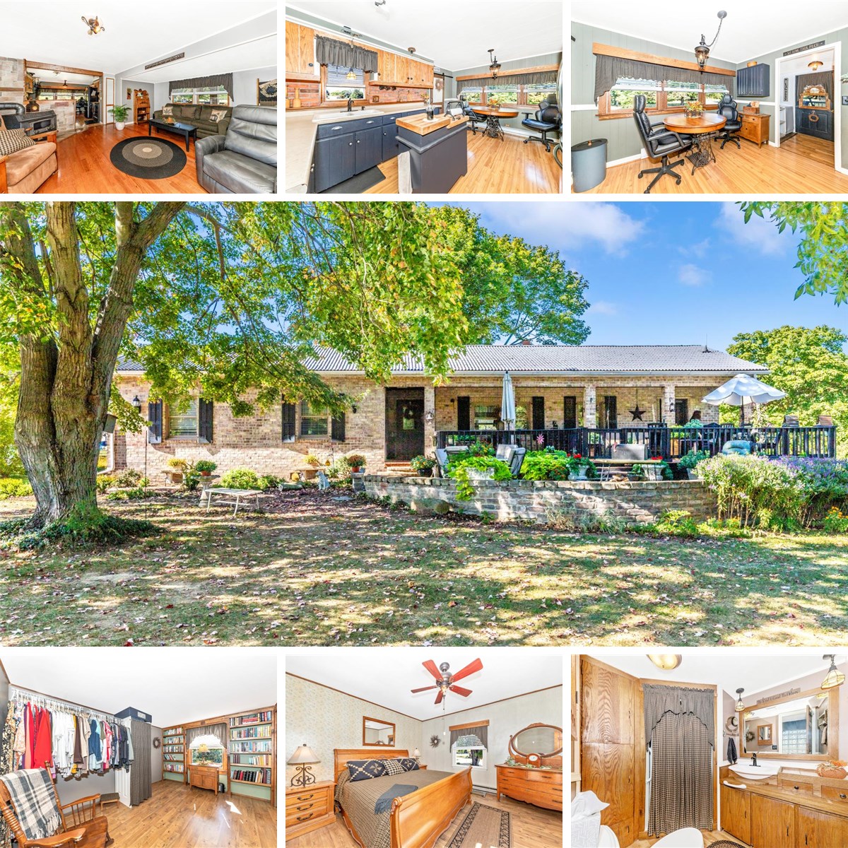 Discover the charm of this one-level, well-maintained home, nestled on a sprawling 6.26-acre lot in a serene rural setting. The true gem of this property is the land itself--6.26 acres of flat, usable ground bordered by trees, with farmland views beyond and a peaceful creek tracing the property line. Multiple outbuildings add both charm and function, including a quaint "she shed" with electric and its own wood stove, a 100+ year-old barn currently serving as a two-car garage, workshop, and loft (with potential to reconvert to stables), and even a woodshed so picturesque it looks like it belongs in a painting--fully stocked and ready for use. With no restrictions, bring your animals and create the homestead you've been dreaming of (just add fencing). The home itself provides a solid foundation with thoughtful upgrades: originally placed on a permanent foundation with steel beam supports, expanded through fully permitted and inspected additions, and wrapped in brick exterior with covered porch and an extensive brick and paver patio. Inside, you'll appreciate replacement windows for efficiency, a wood stove for supplemental heat, and a flexible third bedroom that connects (pass-through) to the primary bedroom--perfect as a sitting area, nursery, or office. This property offers more than a home--it's a lifestyle, offering the perfect blend of country charm, privacy, and practical living.