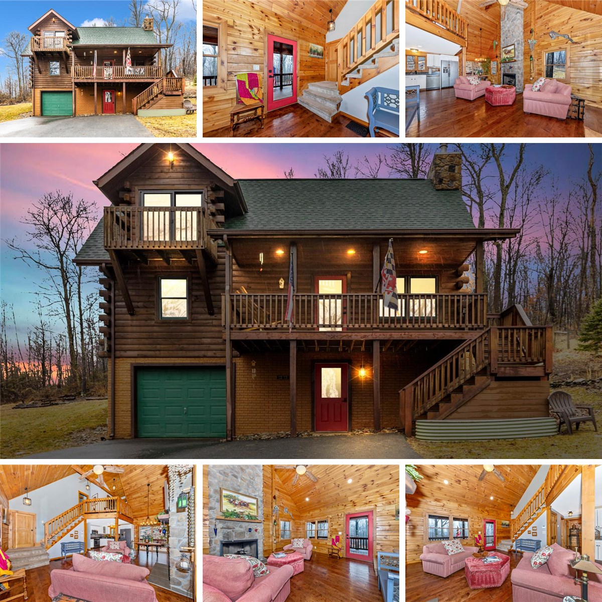 Mountain Magic in Maryland Tucked away on nearly 7 private acres, this exquisite custom square-log home is a rare find — a secluded mountain retreat just 20 minutes from Frederick and moments from Cunningham Falls State Park. Every detail of this home has been crafted with intention. A soaring floor-to-ceiling stone fireplace anchors the open living and dining areas, while warm wood interiors and vaulted ceilings create an atmosphere that feels both grand and deeply inviting. The main level features a bedroom, full bath, and laundry for effortless single-floor living. Upstairs, the primary suite is a true sanctuary — complete with an ensuite bath, custom walk-in closet, and a private balcony overlooking the wooded landscape. Just beyond the suite, a loft perch above the great room makes for an enchanting reading nook with fireplace views below. The connection to the outdoors is seamless. A covered front porch, expansive rear deck, and acres of land — partially fenced and ready for pets or livestock — offer endless possibilities with no HOA. Thoughtful additions include an EV charging station, an RV pad, whole-home Generac backup power, and a wood-burning stove for the coldest mountain nights. A long paved driveway leads to the home, which is completely hidden from the road — offering the kind of privacy that is increasingly hard to come by. The nearest supermarket is just 3 miles away, so solitude never means sacrifice. Shown by appointment only. Please do not enter the driveway without a scheduled visit. Contact Debbie Hugo to arrange a private tour.