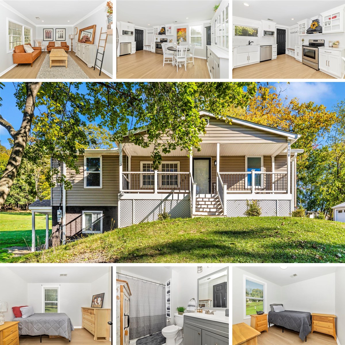 Welcome to 1410 Wooden Bridge Lane in Mount Airy! This beautifully updated home offers the perfect blend of modern style, comfort, and functionality -- all nestled on over an acre of peaceful land. Step inside to discover a stunning kitchen featuring quartz countertops, a modern black range hood, white cabinets with glass-front accents, updated stainless steel appliances, and a white farmhouse sink. The spacious dining area flows into the bright living room, complete with crown molding, an electric fireplace, and black interior doors that create a striking designer touch. Throughout the main level, you'll love the luxury vinyl plank flooring that ties each room together with a fresh, contemporary feel. Three comfortable bedrooms and an updated full bath with built-in linen storage and beautiful finishes complete the main level. The fully finished lower level offers incredible bonus space -- including a family room, recreation area, second full bath, laundry area, brand new carpet, and fresh paint throughout. With a full walkout to the yard, it's the perfect setup for relaxing, entertaining, or creating a great game room space! Enjoy the outdoors from the lovely front porch or the huge rear deck overlooking the yard.