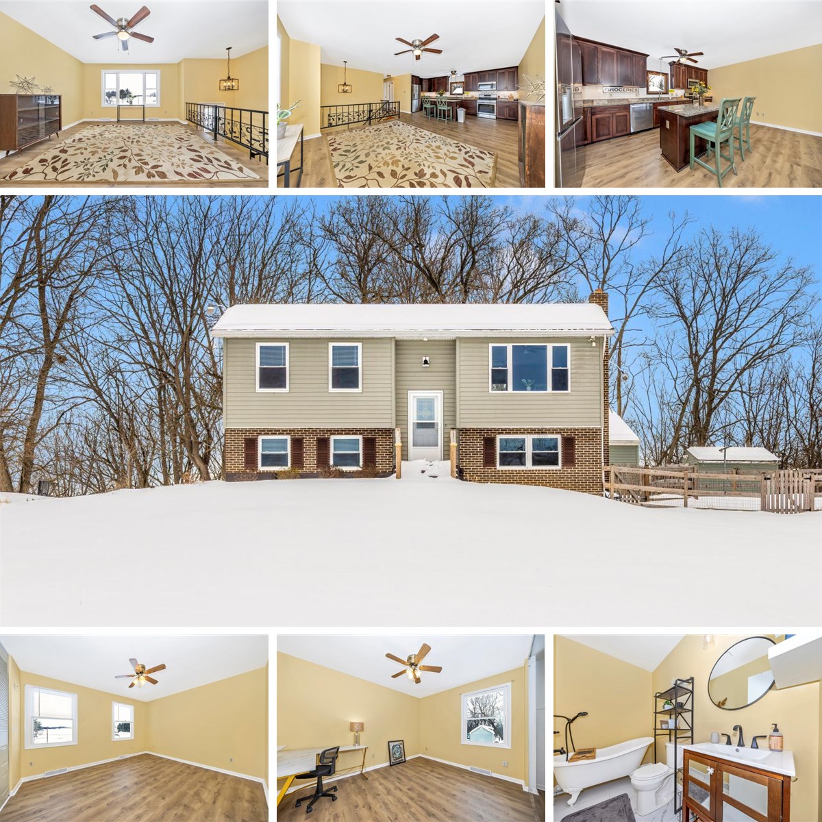 Move in ready 4 bedroom 2 full bathroom home located in scenic country setting. The upper level offers a open floor plan that features 2 Bedrooms 1 full bath and a completely remodeled kitchen with Granite counters, center island and Stainless appliances. The lower level has a nice sized family room with a woodstove 2 additional bedrooms and another full bathroom. Outside features an oversized detached 2 car garage with room for a workshop, crafting shed, tool shed and a large fenced area on the side of the house.
