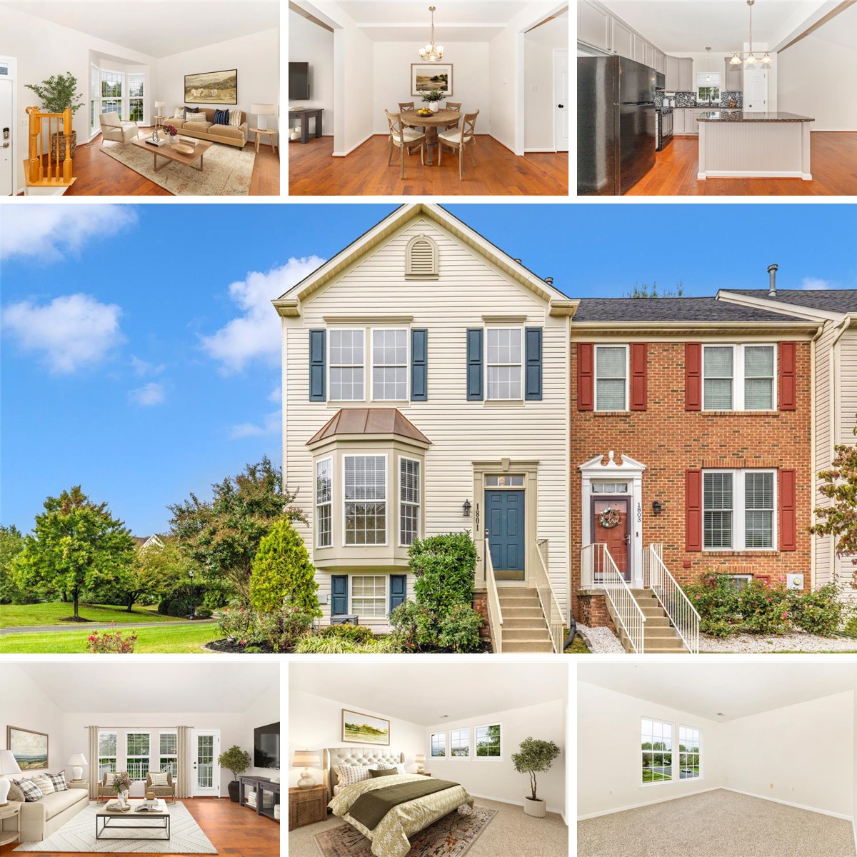 Welcome to this move-in ready end-unit townhome! This beautifully updated home features a spacious and functional floorplan, perfect for modern living. The main level boasts a huge kitchen with granite countertops, a decorative backsplash, and a touchless faucet, flowing seamlessly into the bright breakfast area and cozy family room at the rear of the home. Step outside onto the large deck with mountain views, complete with stairs leading down to the landscaped, fully fenced backyard — ideal for relaxing or entertaining. Inside, you'll find wide-plank hardwood floors and 9-foot ceilings on the main level, adding warmth and elegance. Upstairs, there are two large bedrooms, each with walk-in closets, and two updated full bathrooms featuring granite vanities. The primary bathroom includes a beautiful walk-in tile shower. The finished lower level is perfect for a recreation room, home gym, or guest suite. There's also a separate laundry room and a large unfinished storage area for all your needs. Recent updates include fresh paint, new carpet, and newer major systems — roof, HVAC, water heater, and appliances — offering peace of mind for years to come. With thoughtful upgrades throughout, this end-unit townhome combines comfort, style, and functionality in one impressive package — ready for you to move in and enjoy!