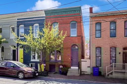 Nestled on a quiet residential street in the heart of the Frederick Historic District, this 1900s Federal style rowhome blends historic character and modern updates with original hardwood floors throughout the home. Walk down the street to the Farmers Market, vibrant art galleries and restaurants and enjoy all that City living has to offer in Frederick! The main level, with exposed brick and crown molding, offers an open floor plan flowing from the living room, dining room to the updated and sun-filled kitchen. Everything has been freshly painted in neutral colors throughout the home. The kitchen has stainless steel appliances, granite counter tops, a gas stove with grill top and a separate butcher block workspace. A bonus updated full bath, along with a washer/dryer, complete the main level. Step outside to your backyard retreat featuring a brick patio with a deep fenced in backyard with a stone path leading to a firepit. Perennial flowers will be popping up in time for Spring and Summer along with raised garden beds to grow your own vegetables and herbs. Upstairs, you will find a spacious primary bedroom that overlooks the street from the front of the house and includes a large closet. (Owner is offering the furniture outside of the sale of the home) The second bedroom also has a deep closet and the third bedroom is currently used as an office. Access the porch from the third bedroom for your morning coffee and a beautiful view of your back yard oasis. The full bath on this floor has also been updated. The dry basement has a concrete floor, abundant storage space, a washing machine, sump pump and radon remediation system, for added peace of mind. This home is the ideal opportunity to enjoy the very best of downtown Frederick Living!