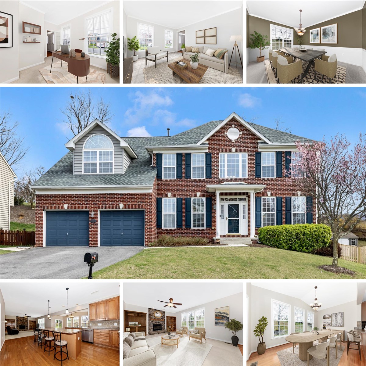 Welcome to 207 Tiger Way in sought-after Fletcher’s Grove—one of the largest Drees floorplans available in the community. This beautifully maintained brick-front single-family home offers over three finished levels of spacious, flexible living designed for today’s lifestyle. A dramatic two-story foyer welcomes you, flanked by a private home office, formal living room, and elegant dining room—perfect for both everyday living and entertaining. The heart of the home is the expansive gourmet kitchen, featuring a large center island, 42” cabinetry, abundant counter space, and a bright morning room. The kitchen flows seamlessly into the extended family room, creating an ideal open-concept layout for gatherings. Step outside to enjoy the fenced backyard backing to scenic farmland, offering privacy and peaceful views. The rear patio is perfect for outdoor dining, relaxing, or entertaining. Upstairs, the luxurious primary suite includes a sitting area, dual closets, and a spa-like en-suite bath with a soaking tub, double vanity, and updated shower (2022). Four additional spacious bedrooms and a 2 Full Baths including a convenient Jack-and-Jill bathroom complete the upper level. The fully finished walk-up basement provides even more living space, including a large recreation room, full bathroom, and two bonus rooms—ideal for a home gym, guest space, or hobby rooms.