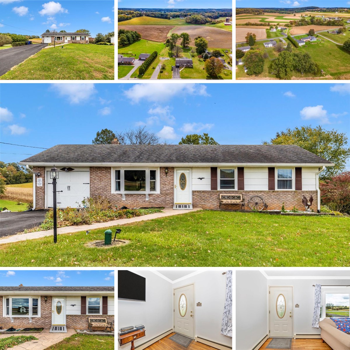 WE FOUND IT!! The one everyone is searching for A 3 Bedroom Rancher with a garage on just over an acre with nothing but country views! Original hardwood floors lead you through the main floor starting in the living room. Down the hall you will find the bedrooms and a full bathroom. The dining room provides a slider to the back porch. Spacious eat-in kitchen, 1/2 bath and a second access point to the 3rd bedroom. This home has some updates which include new windows, awning, slider door and gutters with the leaf filter system. The driveway was redone and the bathroom upgraded to a walk in shower in 2022. The basement was finished at one time but has been used as a workshop and storage. It can easily be brought back to life with your vision and does provide a walk up to the partially fenced back yard. This home is part of an estate of being sold AS IS - Located close to major commuter route, shopping and entertainment. This one will certainly go fast. Call your favorite realtor for a tour!!