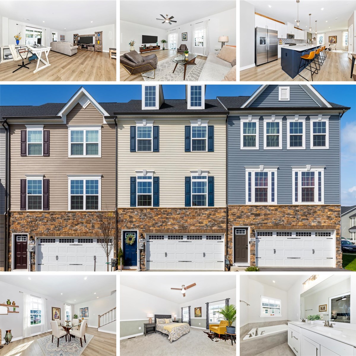 You will love this stunning 3 level townhome, built in 2023, offering timeless curb appeal along with extensive custom upgrades. Charming dormer windows add distinctive character making this home stand out. Entering the foyer, you will appreciate the classic look of vinyl plank flooring along with white risers on the staircase. A spacious 21' by 14.9' family room awaits with sliding doors that lead to the fenced-in backyard. The half bath on this level offers a modern aesthetic: stylish tile flooring, a sliding barn door, and upgraded vanity. Rough-in plumbing is in place to expand to a full bathroom. Upstairs, your dream kitchen features a 12 ft island with quartz counters, gas cooktop, crisp white cabinets, stylish ceramic tile backsplash, and custom-built coffee station. Other custom upgrades on this level include decorative wainscotting, accent walls, and stained horizontal trim boards over kitchen wall cabinets. Outdoor entertaining space awaits with a rear covered patio and spacious deck with vinyl railings. There is also another half bathroom located on this level as well. On the upper level, you will find three bedrooms, two full bathrooms, and laundry room. The 14' x 15' owner's suite offers a custom closet system with built-in shelving. The primary bathroom offers ceramic tile flooring, an oversized soaking tub, and walk-in shower with ceramic tile surround. Enjoy the convenience of having the laundry room located just outside of your bedroom! Ample parking is available with a two-car front-entry garage and a private driveway. Located in sought-after Belle Air community, current owners have also appreciated the nearby walking/biking trails. This home is located just 2 miles away from Baker Park, historic downtown Frederick, and endless restaurants and shops. Enjoy the benefits of having a newer home without having to wait for new construction. Don't wait: schedule your tour today!