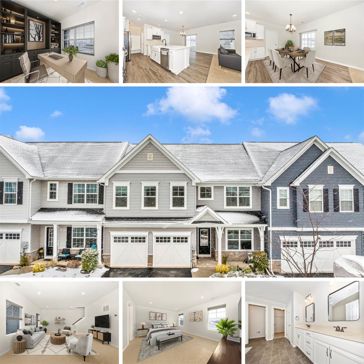 This spacious and well-maintained villa has over 2,600 square feet of finished living space with 9 foot ceilings and offers comfort, flexibility, and exceptional storage. The main level includes a private home office, half bath, bright living area, and stylish kitchen with quartz counters, an oversized island with a farmhouse sink, a gas range, tile backsplash, 42" white cabinets and a sizable walk-in pantry. The dining area will fit a table for 8! Offering plenty of storage throughout, this home includes a mudroom area between the kitchen and 2 car garage with another walk-in storage closet. The second floor features four generously sized bedrooms, all with huge closets. The primary suite includes 2 walk-in closets, a soaking tub, separate shower, and dual sinks and is situated on the back side of the house offering tranquil views and quiet mornings. A separate laundry room and second full bath on this level add convenience. Step outside to the patio and partially fenced yard backing to open common space — providing great outdoor living space, privacy, views, and no homes directly behind. Ideally located in the popular Kellerton neighborhood that provides exceptional community amenities including a beautiful clubhouse and pool and is adjacent to a large city park. Lightly lived in, move-in ready and larger than most 3 level townhomes!