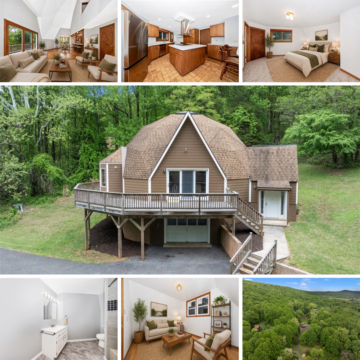 Nestled on a sprawling 6.35 acre lot, this Dome-style residence offers a unique blend of seclusion and comfort, perfect for those seeking an exclusive lifestyle. With a major renovation completed in 2026 that includes new carpet, windows, freshly painted throughout, new HVAC heat pump, and more! The open floor plan seamlessly connects the living and dining areas, enhanced by abundant natural light streaming through the bay window, as well as skylights. The updated kitchen features new stainless steel appliances, a built-in range, and an inviting island. The breakfast area is a cozy spot to enjoy morning coffee, while the wood floors add a touch of timeless charm. This residence boasts three bedrooms and two full baths in the main house, including an entry-level bedroom for added convenience. In addition there is a fourth room for flex use as an office or den. The exterior of the property is equally impressive, with a wrap-around deck that invites you to bask in the serene surroundings. The partly wooded lot backs to trees, providing a sense of seclusion and tranquility. For equestrian enthusiasts, the property is equipped with horse amenities, including 14x48 (3 Stalls) stables and allowing you to indulge in your passion for horses right at home. Additional structures, such as a guest house and 10x20 shed, offer versatility for guests or extra storage. The one bedroom, full bath guest cottage features a living/dining area, kitchenette, basement storage and is separately metered, a plus for potential rental usage. The attached garage provides convenient access, while the expansive driveway accommodates multiple vehicles, ensuring ample parking for gatherings. With breathtaking mountain views and a private, secluded setting, this property is a true sanctuary. This home is not just a residence; it's a lifestyle. Experience the perfect blend of comfort, and nature in this remarkable property, where every detail has been crafted to create a warm and inviting atmosphere. Embrace the opportunity to make this exceptional home your own.