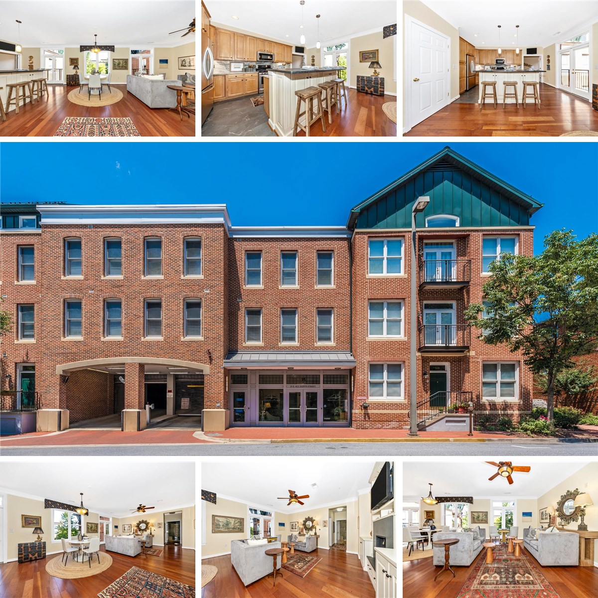 Welcome to 35 E. All Saints Street, Unit 206, a beautifully appointed creek-front residence in the sought-after Maxwell Place condominiums. Perfectly positioned, this unique unit offers serene water views while being set back to also overlook the charming courtyard—providing both privacy and ambiance. Designed with an ideal east/west layout, this home features bedrooms on opposite ends for maximum comfort and separation. At the heart of the unit lies the true showpiece: an expansive open-concept living space where the kitchen, dining, and living areas seamlessly connect, all enhanced by picturesque creek views and access to dual balconies—perfect for embracing indoor-outdoor living. The kitchen is thoughtfully upgraded with stainless steel appliances, including gas cooking and a convenient dual-drawer dishwasher. A spacious island offers additional seating and storage, while the leather-finished granite countertops add a sophisticated and distinctive touch. The dining area is versatile, allowing for multiple layout options to suit your lifestyle, all while remaining central to the home’s vibrant flow. In the living room, custom built-ins frame a sleek electric fireplace, creating a warm and inviting focal point. Dual balcony doors flood the space with natural light and offer the opportunity to fully open the home to the tranquil creek setting. The primary suite is generously sized, featuring a large walk-in closet and a luxurious en-suite bath complete with dual vanities, a soaking tub, and a walk-in shower. The guest suite is equally spacious, offering another oversized closet and an en-suite bath that also provides convenient hall access for visitors. Additional highlights include a centrally located laundry closet, beautiful wood flooring throughout, and two secure garage parking spaces with access to EV charging (available for an additional fee). This exceptional residence combines thoughtful design, modern upgrades, and a peaceful waterfront setting—all in a prime location.