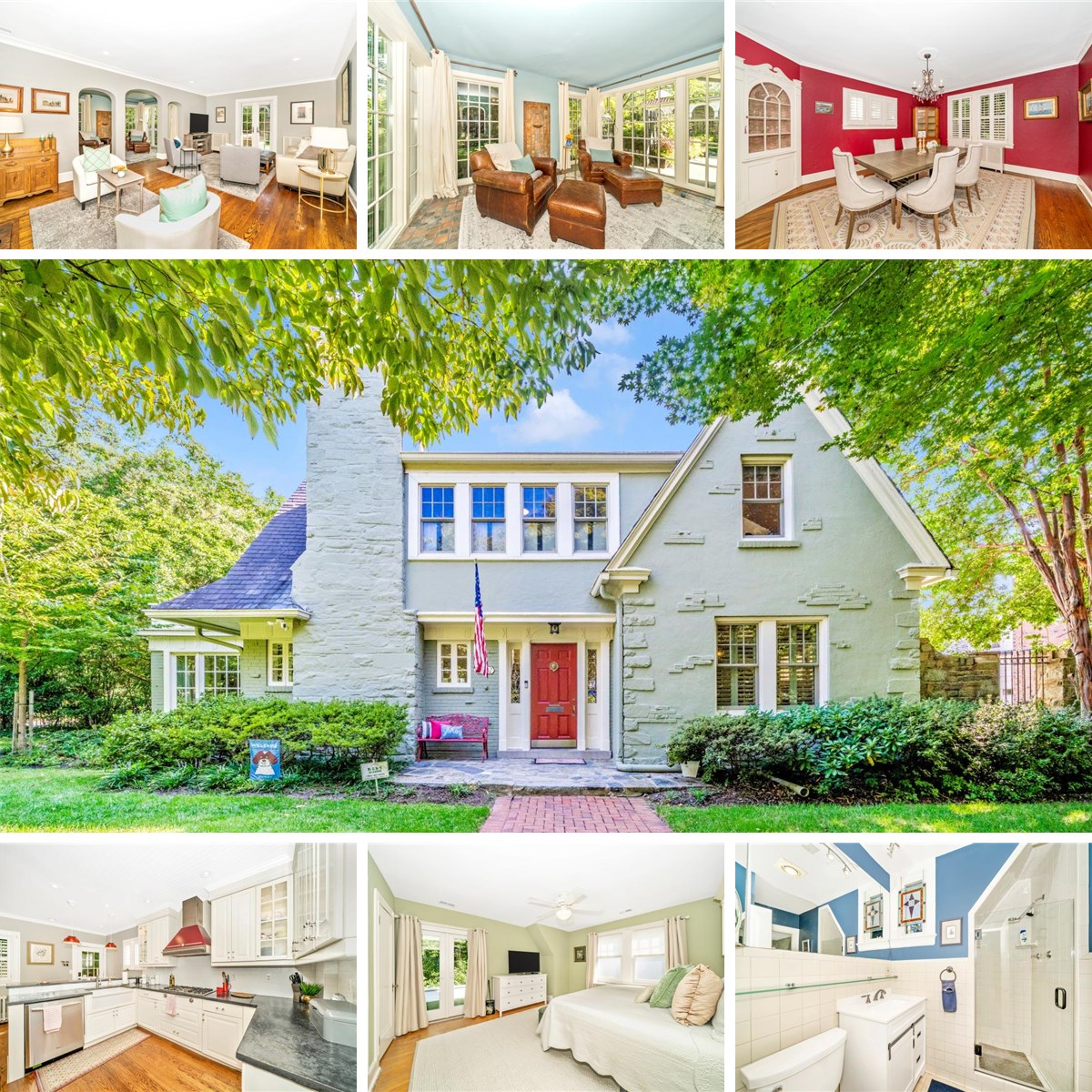 Set inside the Town of Chevy Chase, this classic Tudor blends character and functionality. The main level features nearly ten-foot ceilings, generous room proportions, charming arched doorways, window seats flanking a wood-burning fireplace, and a dining room with built in cabinet and gorgeous plaster medallion. A jewel box sunroom showcases an Ernest Batchelder tile fountain—a striking Arts & Crafts centerpiece. The kitchen offers timeless white cabinetry, gas cooking, and peninsula seating. Upstairs, four bedrooms are thoughtfully arranged with two connecting baths; the primary bedroom opens to a roof deck, a versatile space to enjoy now and reimagine later (buyer to verify permitting). The lower level adds a fifth bedroom, third full bath, rec room, and a handy kitchenette with sink and mini-fridge plus a separate entrance. An abundance of storage in the unfinished attic, lower level storage room, and in the oversized garage ensures everything has a place! Outside, a flagstone terrace and fenced lawn invite effortless entertaining. Garage, driveway, off-alley parking pad and street parking provide rare flexibility. Enjoy nearby Bethesda dining, parks, and the Capital Crescent Trail, with Bethesda Metro connectivity within easy reach.