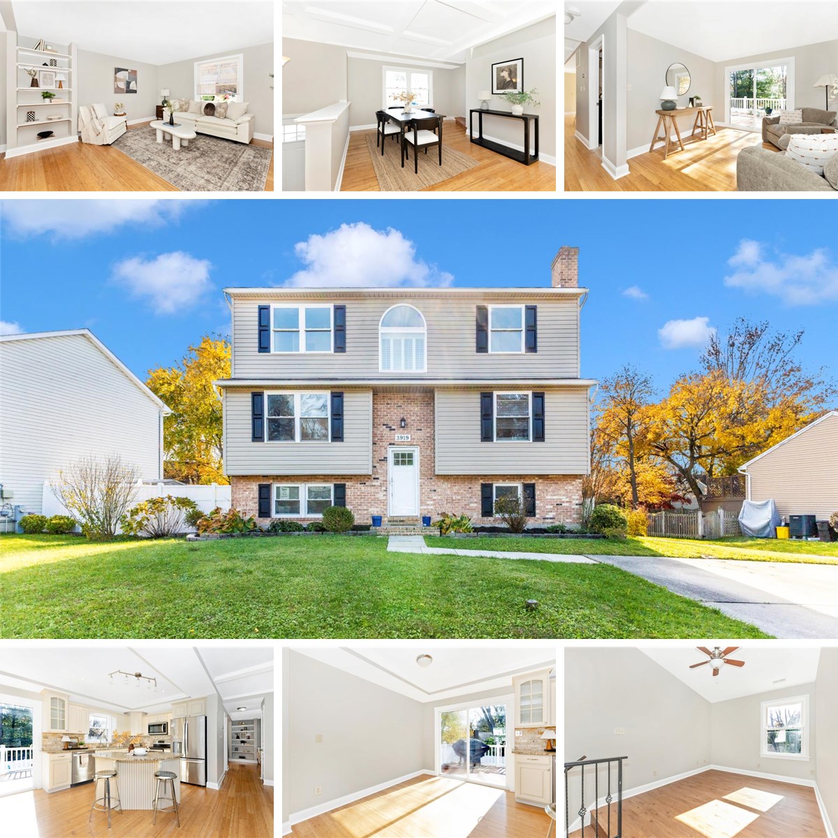 Truly unique and fabulous home. Spacious and cozy at the same time. Four bedroom home with three full bathrooms, open concept kitchen and dining room, large living room with deck that runs across the back of the house overlooking in-ground pool. Hot tub located under the deck. The main floor has tray ceilings in dining room, bamboo flooring throughout, and the kitchen has an island with seating. The upstairs has a lovely landing that can be used for an office or play area, carpeted smaller bedroom and large owner's suite that runs from the front of the house to the back with an ensuite. The lower level has 2 more bedrooms, full bath and a family room with a fire place. The laundry room leads out to the back. Roof replaced in 2021, sewer line in 2022, pool liner in 2022. All appliances, lower level HVAC, sliding door off of sitting area, flooring on upper level and retractable awning are less than 3 years old. Pool, hot tub and shed convey as is.