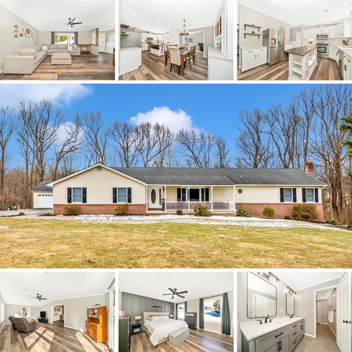 Welcome home to this beautifully updated 4BR/3BA ranch style home that’s hard to find with no HOA in Frederick County /Mount Airy! Set on a quiet, serene 1.55-acre lot on a cul-de-sac backing to woods, this home offers main-level living at its finest and offers 4,000+ SF of finished living space including a gorgeous, renovated kitchen (2022), built-in cabinetry, separate living and dining rooms, a sunny family room, a main-floor primary suite with en-suite bath, two additional bedrooms, three renovated baths (2022), main-level laundry, LVP flooring through the entire house (2022). The lower level is perfect for relaxing or entertaining with a spacious family room and cozy gas stove/fireplace, plus a large bedroom, full bath, and flexible bonus room for an office, gym, or media space. A rare highlight is the incredible garage and parking setup—an attached 2-car garage includes heat and electric plus a powered, finished, heated 3-car detached garage includes electric, cable/phone lines, exhaust fans, and 10’ ceilings, plus an additional rear garage shed—ideal for hobbies, storage, and outdoor equipment. Notable updates and features include a newer roof with asphalt shingle (approx. 10 years in age), HVAC (2024), water heater (2022), well water conditioner (2023), Anderson windows, septic pumped and a hardwired generator setup.