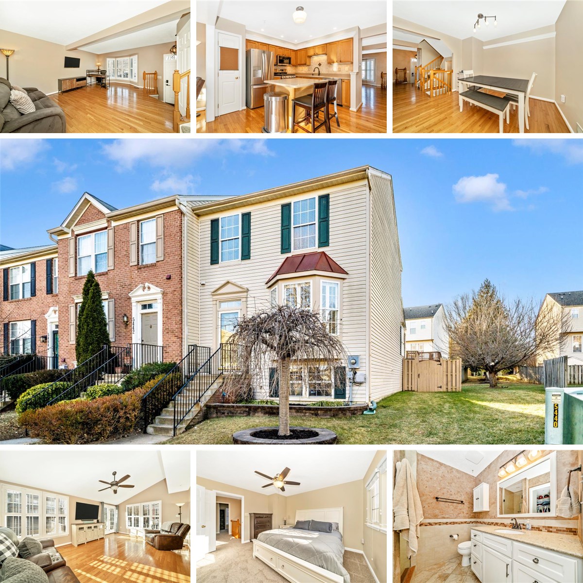 Beautiful End-Unit Townhome in Ballenger Crossing! This well-maintained home features hardwood floors throughout the main level and plantation shutters, creating a bright and inviting space. The spacious family room flows seamlessly into the kitchen, which offers Corian countertops, tile backsplash, new stainless steel appliances, a center island, and ample eat-in table space. Just off the kitchen is an additional living or dining area, perfect for entertaining or flexible use. Step outside from the kitchen to a large deck and fully fenced backyard, ideal for outdoor gatherings. Upstairs features brand-new carpeting throughout, a generous primary suite with a large walk-in closet, and a private en-suite bath showcasing a custom tile shower with a frameless glass door. Two additional well-sized bedrooms and a second full bath with custom tile work and a granite vanity complete the upper level. The fully finished lower level offers a spacious recreation room with an energy-efficient gas fireplace, a fourth bedroom, and a convenient half bath. A walk-out basement provides even more natural light and functionality. Additional highlights include a newer roof, fenced yard, and no city taxes. Conveniently located near schools, shopping, and major commuter routes. This home offers exceptional space, upgrades, and value—don’t miss it!
