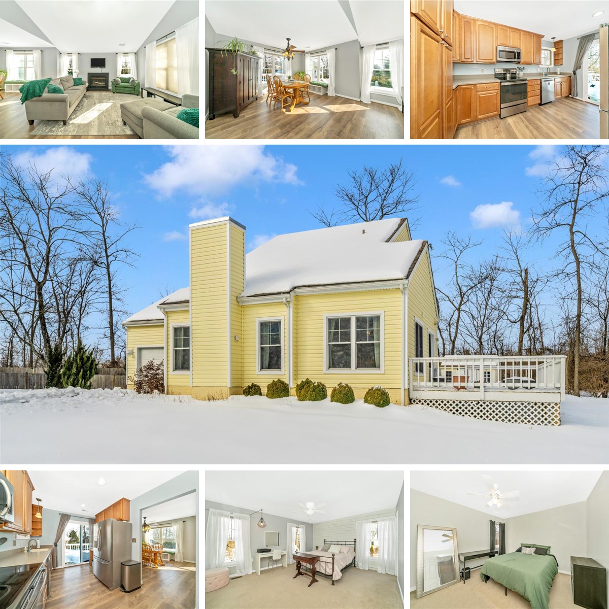 Lovely home in the lovely enclave of Woodspring at New Market! This 3 Level Contemporary Split is bursting with sunshine inside and out! Covered breezeway style side entry boasts a vaulted ceiling into the Living Room with a wood-burning fireplace open to the Dining Room, all with luxury vinyl plank flooring. Custom galley-style Kitchen with Maple Cabinets, Corian Counters & Stainless Appliances offers a slider to the extra large side Deck. Upper Level features a Primary Bedroom with Access to the Upgraded Upper Level Bath and the second bedroom. Lower Level offers a spacious third bedroom, a full bath, Family Room with exit to rear and the utility/laundry room. The back has a shed for your garden tools and the yard is fenced for your pups!