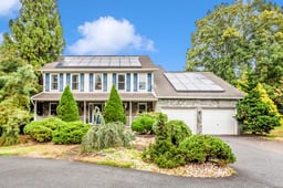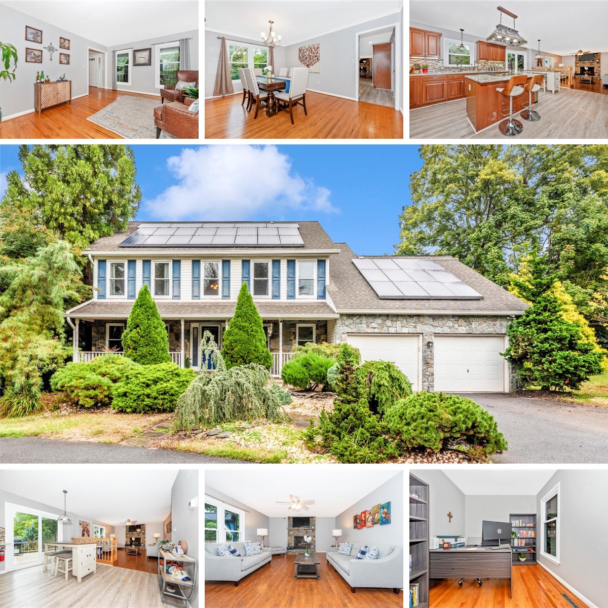 This stunning 5-bedroom, 3 ½-bath colonial on 1.43 acres offers a rare ASSUMABLE VA LOAN for qualified veterans at a low interest rate! Nestled in a spectacular private setting with extensive landscaping, just minutes from Downtown Mount Airy, this home blends timeless charm with modern updates. From the moment you arrive, you’ll love the stone front façade, circular driveway, and expansive front porch that invite you in. Inside, a two-story foyer leads to sun-filled spaces featuring hardwood floors in the office, living, and dining rooms. The gourmet kitchen features granite countertops, cherry cabinetry, stainless steel appliances, and a stylish tile backsplash—perfect for entertaining. The family room’s stone hearth fireplace adds cozy elegance. Upstairs, spacious bedrooms provide comfort, while the fully finished lower level expands your living space with a fifth bedroom/flex room, full bath, and walkout to the backyard. Storage abounds throughout the home. This property is also equipped with solar paneling, offering an eco-friendly advantage and substantial savings on utility expenses—a feature you’ll enjoy for years to come. Recent updates bring peace of mind: all appliances (2020), central A/C (2018), new windows and sliders (2023), roof (2016), gutters (2023), basement flooring (2023), well pump (2023), ceiling fans (2022), renewed landscaping (2023), plus a full boundary survey in 2023. Whether you’re relaxing on the porch, enjoying the recreation room, or taking in the tranquil views, this home is move-in ready and waiting for you. Don’t miss the opportunity to make it yours!