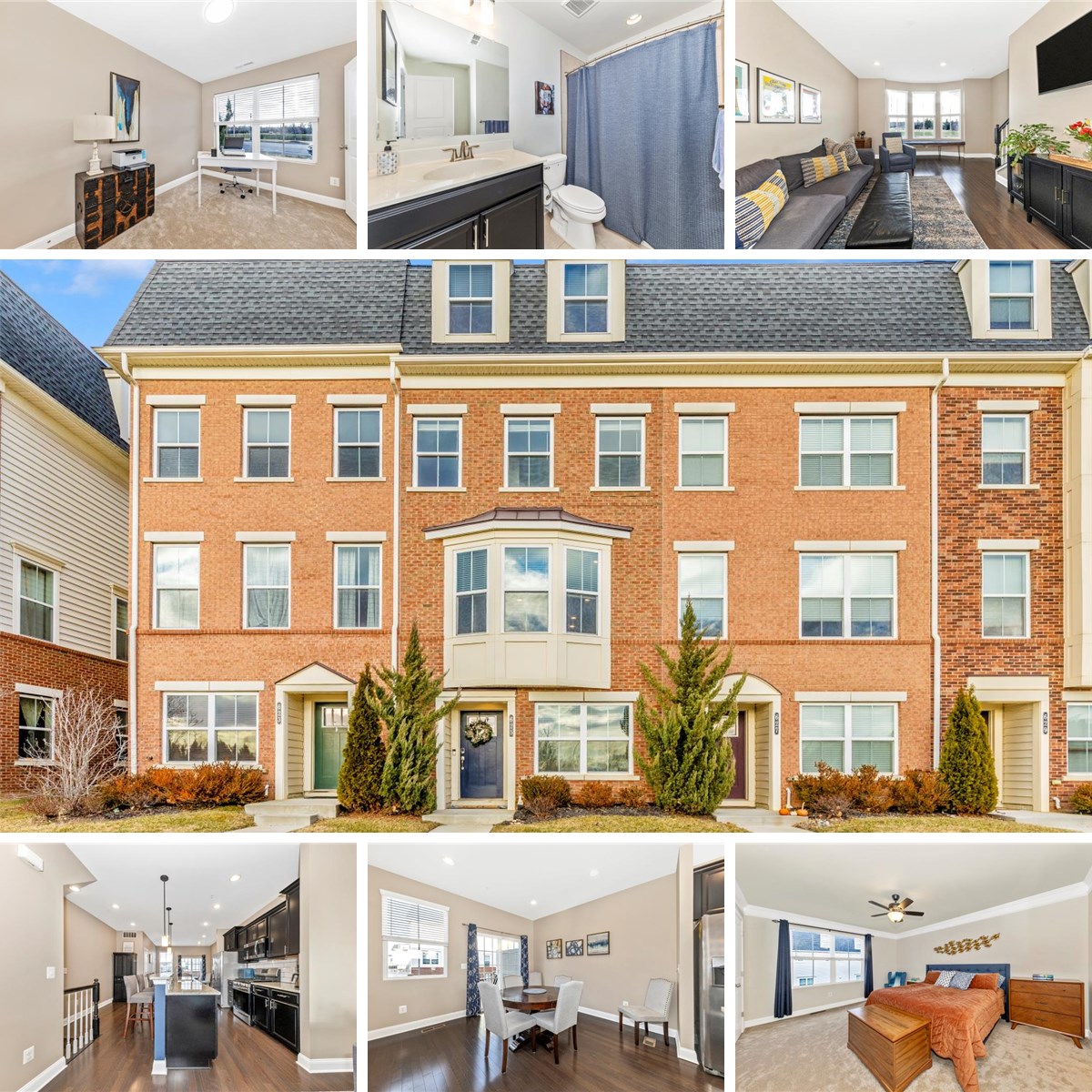 Welcome home to this, does it all, checks it all and more townhouse in the coveted Eastchurch community situated just on the outskirts of Downtown Frederick. First off, this community is the best of both worlds. Newer construction yet still walkable and accessible to historic Downtown Frederick and all it has to offer without the headache of owning an old home. You also have the creature comforts of a beautiful club house and community swimming pool for those hot summer days. (I know it's too cold to think about a pool, but when it's 90 degrees you'll be thanking me. ). This townhouse goes and goes. The maintenance free lawn is mowed for you by the community. When you enter this brick front unit on the ground level you'll immediately find the first of four bedrooms. This room can serve as a bedroom, office, gaming room. Whatever works for you. There is also a full bath with tub shower on this level to accompany the bedroom. Further down the hall is the mudroom with built-ins leading to the attached garage. Go up to the main living level and find a wide open flooplan. The living room boasts a bay window with custom window seat for enjoying the westward view of the sunsets. The kitchen has a massive center island for seating, work, and counter space. Pendant lights over the island, gas cooking, stainless appliances, granite counters and crisp backsplash make this kitchen stunning. The dining room has ample space for your table and additional dining pieces. There is a half bath on this level so you don't have to go to the bedroom levels for a bathroom. Head upstairs to the third floor to find the primary suite with en-suite bath. This room is huge with dual closets and a dresser nook. The primary path features double sinks, a walk-in shower and a walk-in closet with custom built-ins. The laundry is conveniently located in the closet on this level. the third bedroom is on the front of the home on this level and is sweetly appointed. Saving the best for last, the fourth floor. On this level you will find a large loft space with built-in dry bar w/ mini-fridge. You also have access to the balcony for sweeping views for miles. This space is so flexible you will surely have a million uses for it. Next is the third full bath with tub shower, located just off of the fourth and final bedroom with charming deep window sills. Outside you'll enjoy time on either the upper level terrace or the porch off of the dining/kitchen/living floor. You have a single car garage as well as driveway and street parking for guests.