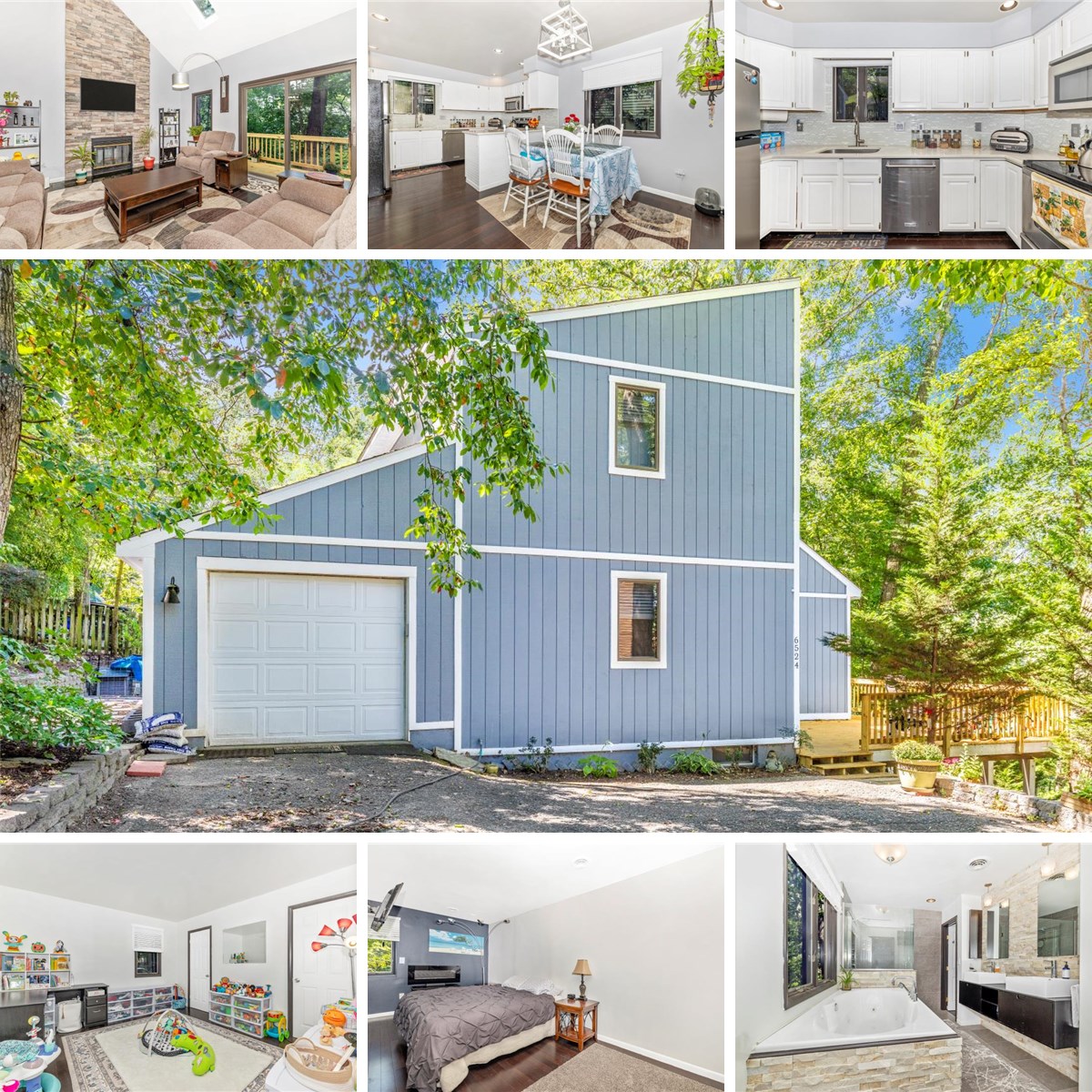 Welcome home to this stunning property offering the perfect blend of elegance, comfort, and modern updates. Outdoor Living at Its Best: Enjoy a brand new deck, wrap-around front porch, and large front deck – perfect for entertaining or relaxing. Fresh & Modern Upgrades: New carpeting (less than a year old!) plus dark, rich, gleaming hardwood floors on the upper two levels. Showstopper Master Bath: Recently renovated with exquisite stonework, sleek double-bowl sinks, and a custom spa-like shower. Bright & Spacious Living: The sunken living room boasts soaring ceilings, a cozy fireplace, and doors leading to a balcony with breathtaking views. Gourmet Kitchen: Granite counters paired with a sparkling glass tile backsplash, offering style and functionality for any home chef. Flexible Layout: Main level bedroom with a full bath, perfect for guests or multigenerational living. Finished Walk-Out Basement: Complete with a full bath, providing extra living space for recreation, a home office, or in-law suite. This home truly has it all – thoughtful design, modern finishes, and room to grow!