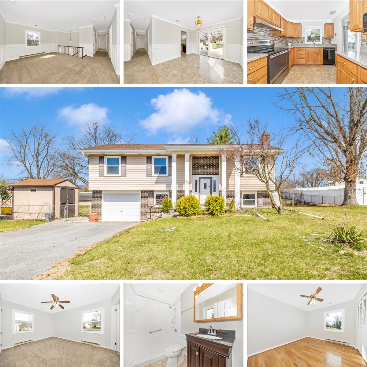Tucked into the established Crestview Estates neighborhood, this well-maintained 3-bedroom, 2.5-bath split-level offers the perfect balance of peaceful suburban living and easy access to everything Frederick has to offer. The renovated kitchen flows seamlessly into the main living and dining areas, filled with natural light from large replacement tilt windows. Recessed lighting adds a clean, modern feel throughout. Beneath the carpeting lies hardwood flooring — ready to be revealed. The finished lower level is a true gathering space, featuring new flooring and a propane gas stove that efficiently heats much of the home on cold Maryland evenings. Major systems have been thoughtfully updated: 30-year roof and new gutters (2014), central A/C (2014), water heater, holding tank, and filtration system (2021), plus new faucets and disposal (2021). Bathrooms have been remodeled, and a Trex deck completes the outdoor package. Step outside to a level, fully fenced backyard with two storage sheds and a deck perfect for relaxing or entertaining. Whether you're hosting a summer cookout or enjoying a quiet morning coffee, this outdoor space delivers. Commuters will love the quick access to I-70, I-270, and Route 15, while downtown Frederick's restaurants, shops, and amenities are just minutes away. This one checks all the boxes — move-in ready, thoughtfully updated, and ideally located.