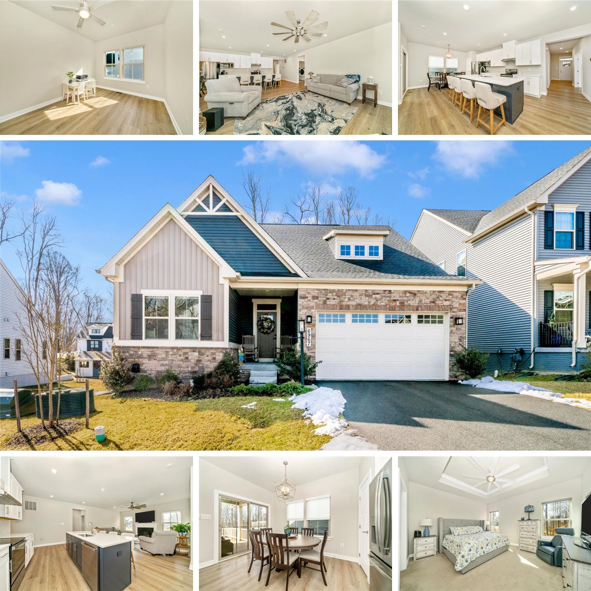 *First floor living with a wooded view * This gorgeous 3 bedroom, 3 full bathroom, 2 car garage home nestled in the newer Hamptons community in amenity rich Lake Linganore checks all the boxes for a lifestyle you'll love! With over 1,600 square feet on the main level and over 2,600 Total finished sf, the Bramante ranch model offers a spacious sunlit open layout with primary bedroom on the main level. From the covered front porch area, the foyer welcomes you in, and a convenient arrival center sits off the garage. All on the first level you'll find the office/library with glass French doors, a large bedroom, plus the luxurious owner's suite which features a tray ceiling with a ceiling fan, an attached bathroom with a window, double bowl vanity, a walk-in shower with two showerheads on opposite walls, and walk-in closet for a spa-like feel. A separate laundry room with upgraded front load washer/dryer is steps from the kitchen for your convenience. Enjoy cooking and entertaining friends with the oversized quartz island in the gourmet kitchen that includes stainless appliances, a built-in microwave, French door refrigerator, soft close cabinet drawers, a sparkling backsplash, dining area with a sliding door to access the covered porch with a maintenance free uncovered composite deck overlooking the flat backyard and tranquil wooded views. The adjoining family room has a gas fireplace to add a warmth and glow to your home, each window has motorized blinds operated with a remote control. And that's just the main level! Retreat downstairs to the huge finished walkout basement recreation room for even more living space and a very large unfinished storage room, think home gym, art studio, craft room! Down the hall on the lower level you'll also find a generous sized third bedroom with walk in closet and a full bathroom. AND... This home was just built in 2023. It has upgraded cabinets, a whole house humidifier, an efficient tankless water heater, LVP flooring, carpeted bedrooms, a navy kitchen island base with complementary white wall cabinetry that creates an impressive designer look and for your outdoor entertaining a permanent gas line for a BBQ on the lower level for a future outdoor kitchen. Located in the desirable Hamptons community at Lake Linganore—swim, fish, boat! Enjoy the pools, lakes, beaches, trails, playgrounds, tennis, basketball, pickleball courts, community events and more. Minutes to commuter routes, I-70, and downtown Frederick. 6 miles to MARC Frederick train to DC. Quick access to multiple grocery stores, shops and restaurants.