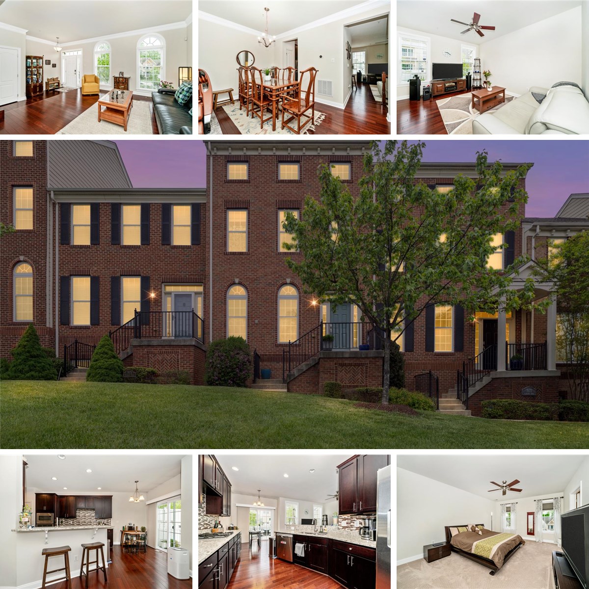 Elegant brick-front townhome in the prestigious Enclave at Arundel Preserve offers over 2,372 finished square feet of beautifully curated living space. Refined details include wood louvered shutters, rich hardwood flooring, and elegant crown molding, all complemented by two private outdoor retreats. The main level is thoughtfully designed for both sophisticated entertaining and comfortable living, featuring a welcoming foyer, a formal living room framed by Palladian windows, and an open dining area that transitions seamlessly into a light-filled great room or morning room with a ceiling fan. The gourmet kitchen is a standout, appointed with 42" Shaker-style cabinetry, granite countertops accented by a mosaic tile backsplash, stainless steel appliances including a gas cooktop, a pantry, and a spacious breakfast area with sliding doors opening to a low-maintenance deck. Upstairs, the expansive owner’s suite provides a true retreat, offering both a walk-in and additional wall closet, along with a spa-inspired bath featuring custom tilework, a double vanity, a separate shower, and a corner soaking tub. The sun-drenched fourth-floor loft showcases soaring cathedral ceilings with skylights and a ceiling fan, creating a versatile and airy space ideal for recreation, work, or relaxation, with direct access to a private third-level deck. The lower level further enhances the home’s livability with a generously sized family or recreation room or office