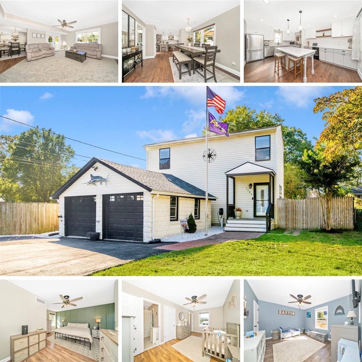 Come fall in love with this beautifully renovated 3-bedroom, 2-bath home! Step inside to find a modern, stylish interior featuring a stunning kitchen with 42" white and gray cabinets, a tile backsplash, a large center island, sparkling white quartz countertops, a beverage fridge, a pot filler, a pantry and a gas stove. Both bathrooms have been beautifully remodeled, and the home features LVP flooring throughout and French doors with built-in blinds. .Outside, you’ll love the fenced backyard, extra-large driveway, and detached two-car garage equipped with a mini-split system for heating and cooling, plus new garage door openers for added convenience. Enjoy outdoor living on the updated Trex deck, and take advantage of the added storage shed. Major updates include a new roof, furnace, and tankless water heater (2023) — offering peace of mind for years to come. Perfectly located close to shopping, restaurants, and major routes, this home combines comfort, convenience, and style.