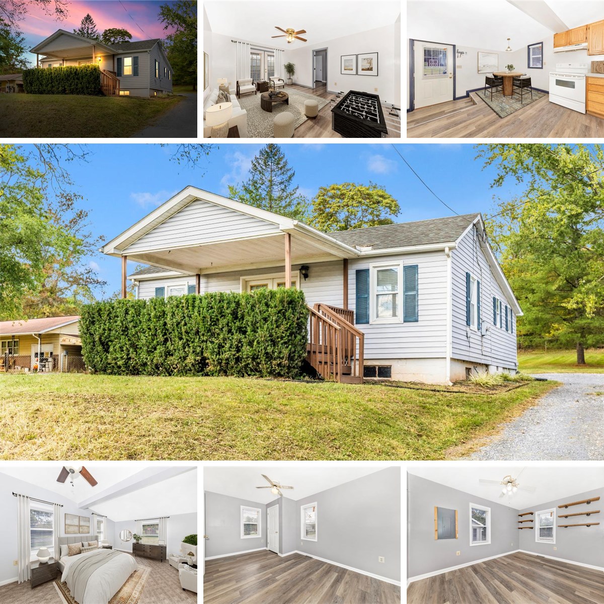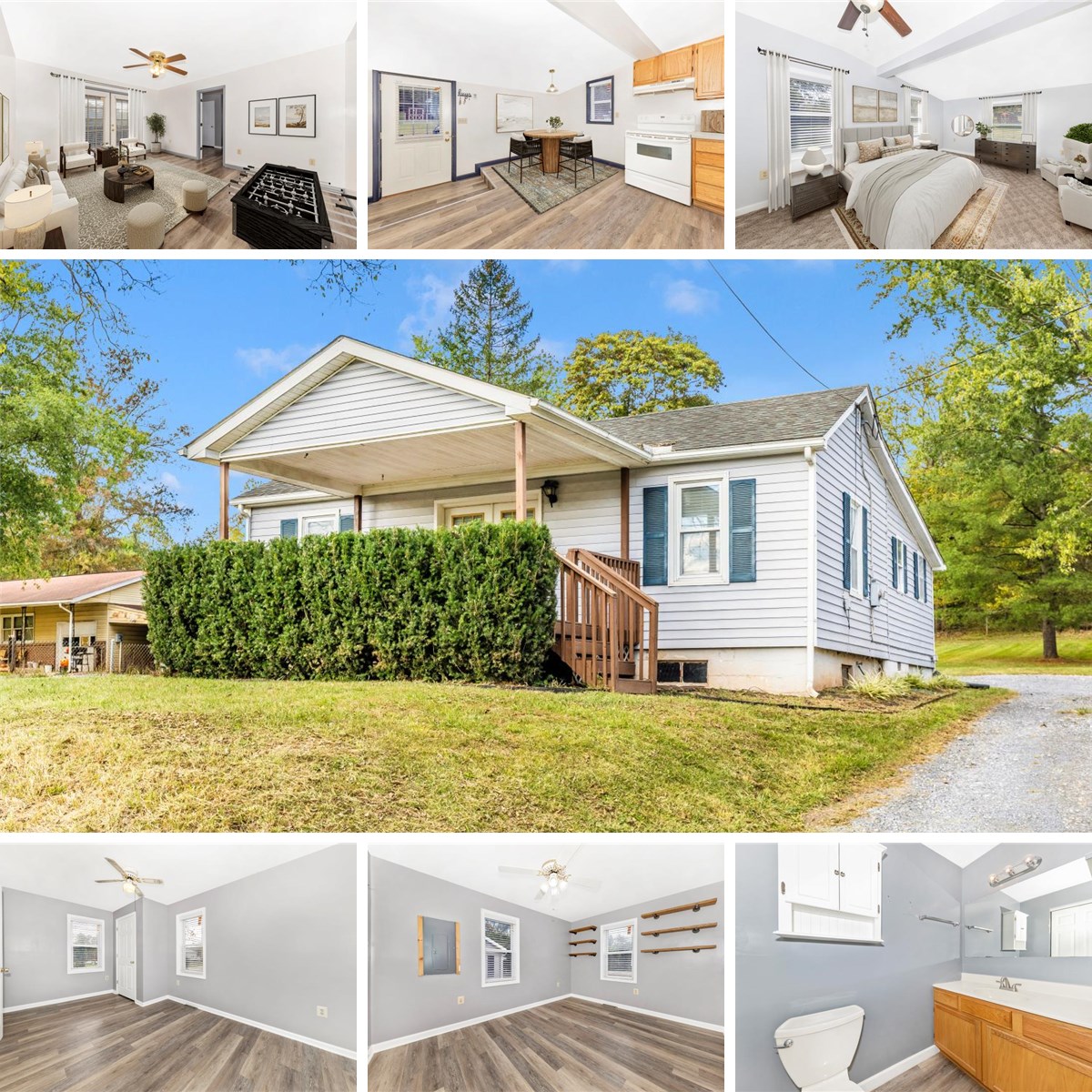 Welcome to this charming and refreshed home in Rocky Ridge! As you arrive, you’ll love the inviting wood front porch — the perfect spot to sit back and enjoy the surroundings. Step inside through the double doors, where you’re greeted by a bright and comfortable living room featuring luxury vinyl plank flooring, a ceiling fan, and neutral paint throughout. Just off the living room is a cozy bedroom to the left, ideal for guests, a home office, or a den. A convenient coat closet adds functionality near the living room. The quaint kitchen offers table space for casual dining, a spacious pantry, and a rear door leading out to the yard and parking area. You’ll also find a spacious primary bedroom and a nicely sized third bedroom, providing plenty of room for family or guests. The large full bath includes a generous linen closet for extra storage. Additional highlights include new two-inch blinds throughout, an unfinished basement for storage or future expansion, and two storage sheds — perfect for tools, lawn equipment, or hobbies. Outside, the yard offers plenty of space to relax or garden, and you’re just minutes from town, parks, and commuter routes.